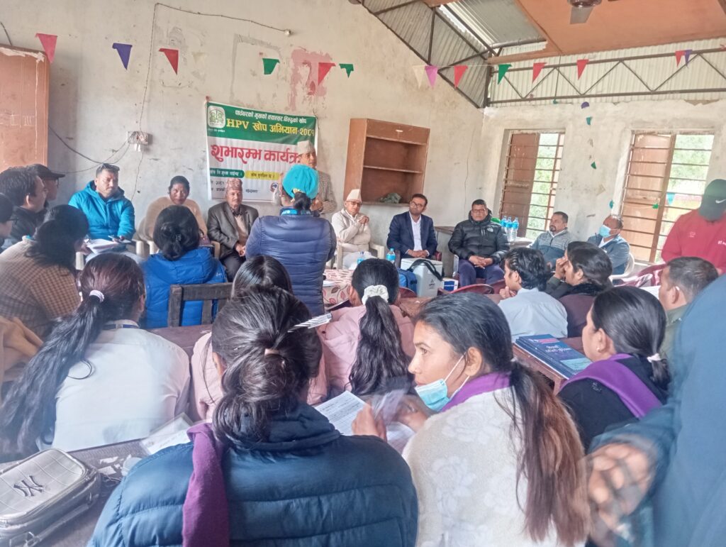 कार्यक्रममा प्रमुख जिल्ला अधिकारी नारायण प्रसाद सापाकोटाले पाठेघरको क्यान्सरबाट बच्नको लागि सबै लक्षीत महिलाले लगाउन आवश्य रहेको बताउनुभयो । बार्षिकरुपमा महिलाहरुले पाठेघरको क्यान्सरबाट मृत्युबरण गरीरहको बताउदै प्रमुख जिल्ला अधिकारी सापकोटाले कक्षा ६ देखि कक्षा १० मा अध्ययनरत विद्यार्थी र अन्य विद्यालय बाहिर रहेका १० बर्षदेखि १४ बर्ष उमेर समुहलाई निर्धक्क भएर एचपिभी खोप लगाउन आग्रह गर्नुभयो ।