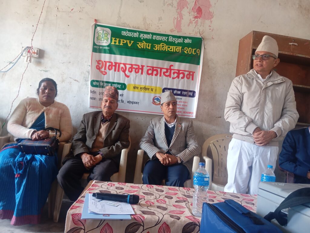 त्यसैगरी महाकाली प्रादेशिक अस्पतालका सुपरिटेन्डेण्ट डा. अर्जुन भट्टले पाठेघर विरुद्धको एचपिभी खोप डब्लुएचएले प्रमाणित गरेको खोप भएकोले एकदमै सुरक्षित रहेको बताउदै ढुक्क भएर खोप लगाउन विद्यार्थीहरुलाई आग्रह गर्नुभयो ।