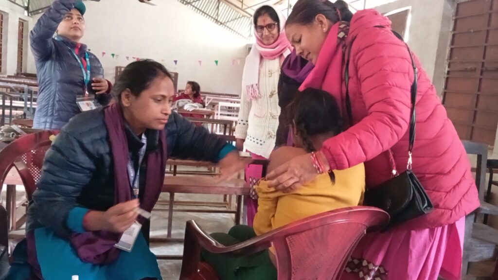स्वास्थ्य कार्यालय कञ्चनपुरले २७ हजार ७ सय ६५ किशोरीलाई खोप दिने लक्ष राखेको छ । आज माघ २२ मंगलबार देखि शुरु भएको खोप अभियान ६ फागुनसम्मै संचालन हुनेछ । विद्यालयमा अध्ययनरत २६ हजार, ८सय २ र विद्यालय बाहिर रहेका ९ सय ६३ किशोरीलाई खोप दिईनेछ । जिल्लाभरी ४ सय २६ खोप केन्द्र मार्फत पाठेघरको मुखको क्यान्सर बिरुद्धमा खोप दिईने उनले बताए । नियमित खोपसंगै यस अघि खोप लगाईसकेका किशोरीहरुलाई अभियानको क्रममा खोप दिईने छैन । विद्यालयमा ४ सय २६ र विद्यालय बाहिर ८२ खोप केन्द्र मार्फत खोप दिईने छ । ४ सय २६ खोप स्वास्थ्यकर्मी र ८ सय ५२ स्वाथ्यस्वयम सेवक खटिएका छन् ।