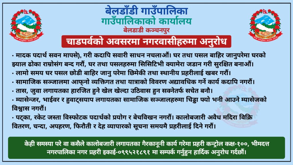 कञ्चनपुर महेन्द्रनगर–खाद्य व्यवस्था तथा व्यापार कम्पनी लिमिटेडले महेन्द्रनगरमा सहुलियत दरमा चामल विक्रि गरीरहेको छ । खाद्य व्यवस्था तथा व्यापार कम्पनी लिमिटेडको महेन्द्रनगरमा रहेको कार्यालयबाट भाद्र ३० गतेदेखि सहुलियत दरमा चामल विक्रि गरीरहेको हो । कम्पनीले आगामी कार्तिक १० गतेसम्म सहुलियत दरमा चामल विक्रि गर्ने जनाएको छ । कम्पनीले दशै दिपावलीलाई लक्ष्यीत गरी सर्वसाधरणका लागि मोटो र मसिनो गरी दुई प्रकारको चामल सहुलियत दरमा विक्रि गरीरहेको कार्यालयका प्रमुख महिकरण महराले बताए । ‘हामीले विगत बर्षजस्तै यस बर्षपनि सहुलियत दरमा चामल विक्रि गरीरहेका छौ,’ कार्यालय प्रमुख महराले भने, ‘जीरा मसिनो चामल र मोटो चामल गरी दुई क्याटगेरीको चामल राखेका छौ ।’