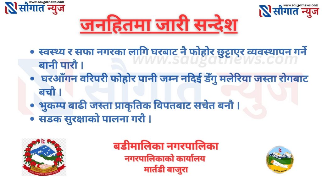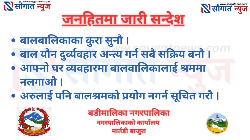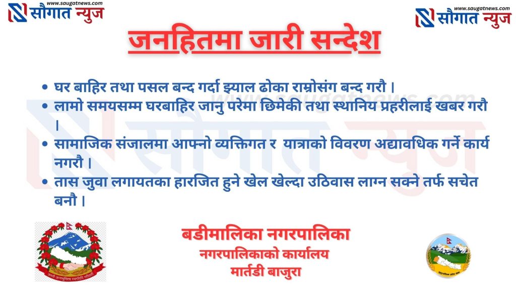 सौग़ात न्युज डटकमले समाचार, विचार, मनोरन्जन, खेल, विश्व, सुचना प्रविधि, भिडियो तथा जीवनका बिभिन्न आयामका समाचार र विश्लेषणलाई समेट्छ । मर्यादित समाज विकास र उन्नतीको पथमा अगाडी बढ्ने उदेश्यका साथ आवाज बिहीनहरुको आवाज बनेर बाहिर प्रस्फुटन हुन नसकेको सत्य तथ्य, निष्पक्ष समाचार संप्रेसण गर्न सधै प्रतिबद्धछौ । भ्रस्टाचार, अनियमितता सम्बन्धी कुनै अडियो भिडियो तपाई संग छ भने हामीलाई उपलब्ध गराउनुहोस र जिम्मेवार नागरिकको दायित्व पुरा गर्नुहोला, श्रोत गोप्य राखिने छ ।